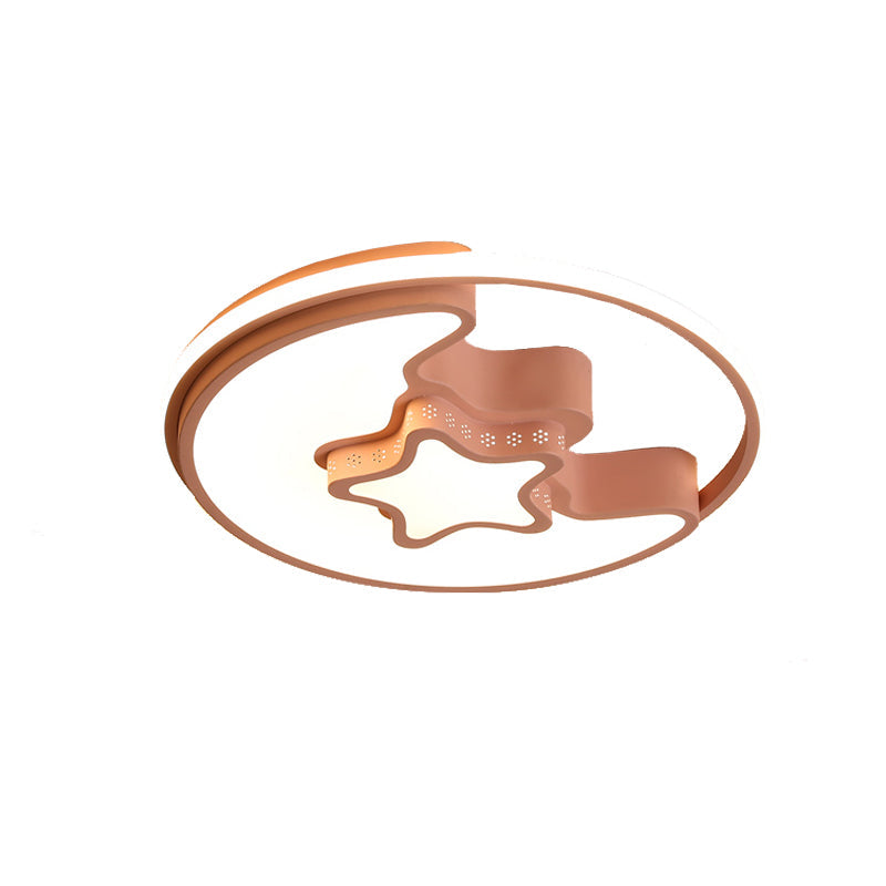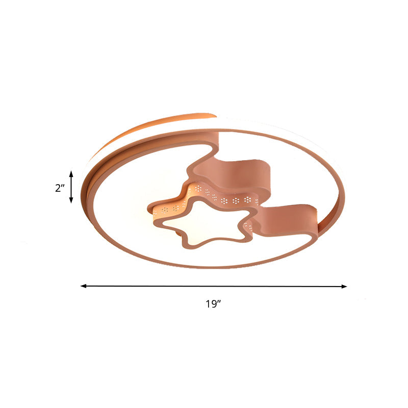 Modern Metal Crescent And Star Ceiling Mount Light - Flush For Nursing Room Pink / White