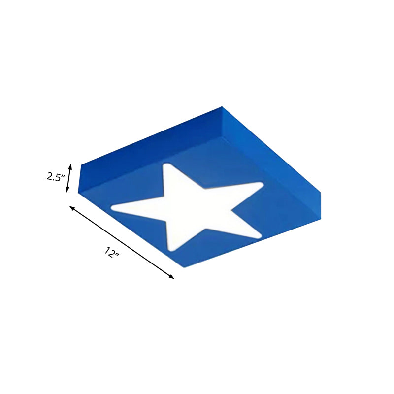 Square Metal Flush Ceiling Light with Star Design - Modern Lighting for Kid's Bedroom