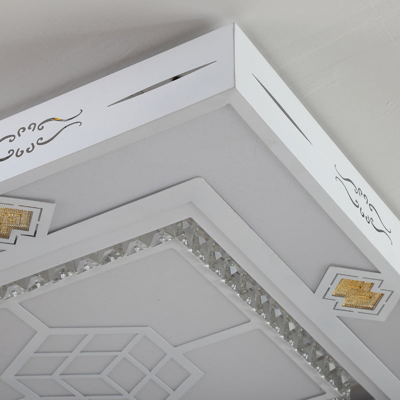 Modern Led Ceiling Mount Light With Crystal Accent - Rectangular Mental Flush Lamp For Living Room