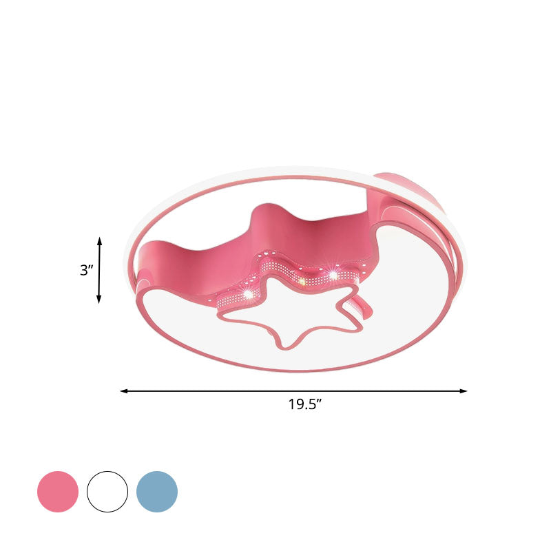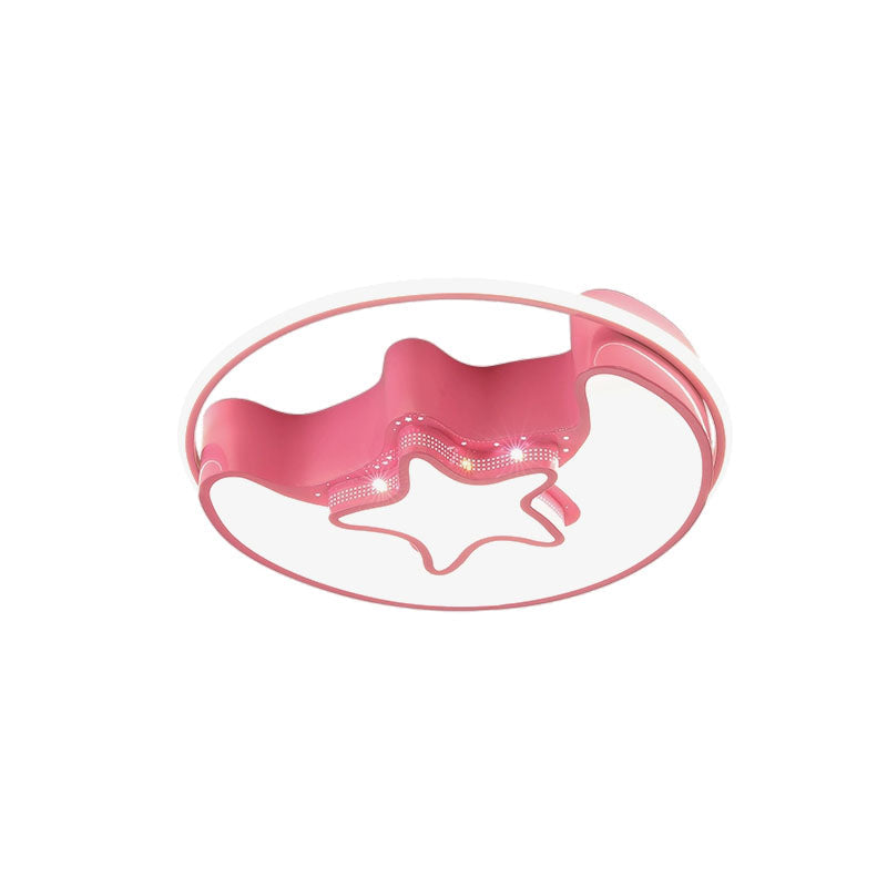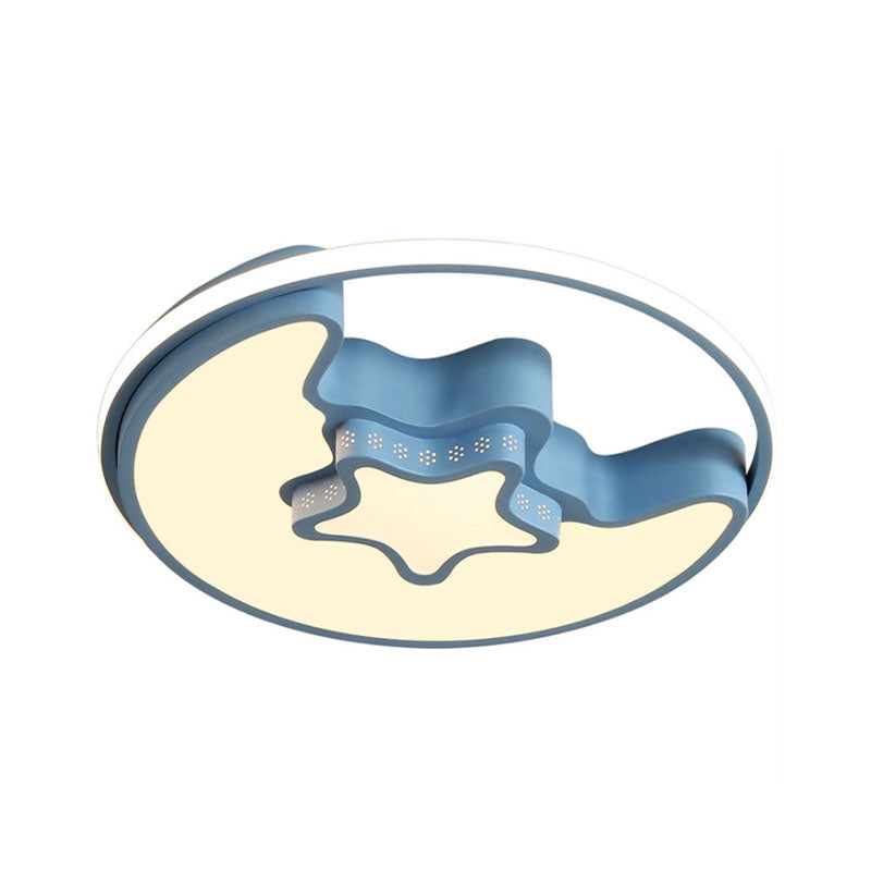 Nordic LED Ceiling Fixture with Moon and Star Flush Mount Spotlight: White/Pink/Blue, Acrylic Shade, 3 Color Light