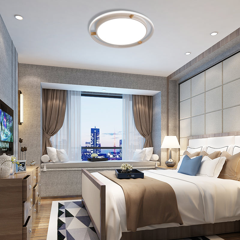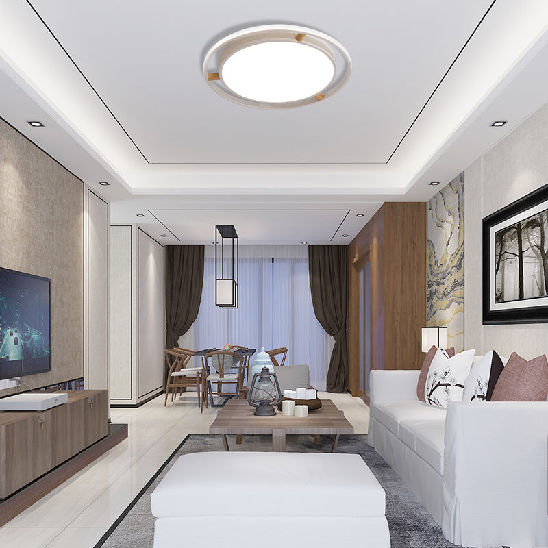Nordic Dual Circle Led Ceiling Flush Light With Wood Arm - White/Green/Grey Thin Flushmount
