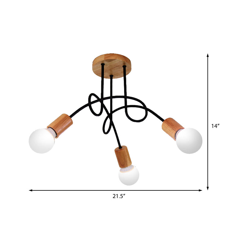 Moreover, the light can support LED, incandescent or fluorescent lights with a E26/E27 bulb base; the number of lights are 5 and 3 for 25" and up and 20" to 24" respectively. No bulbs are included, so you can choose the specific bulb shapes or wattages to your taste. This Twisted Semi Flush Mount Light Modern Wood Bare Bulb Ceiling Lights for Bedroom is definitely designed for maximum functionality and convenience when it comes to brightening up your home. The industrial style design is sure to complement any home décor.