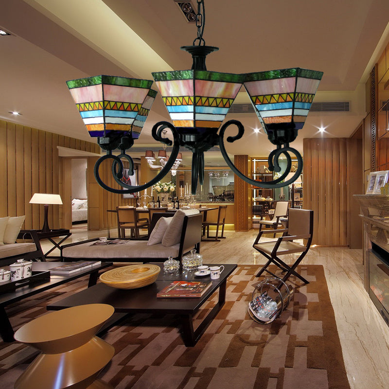 6-Light Tiffany Stained Glass Chandelier: Pink Pyramid Pendant With Chain For Bedroom