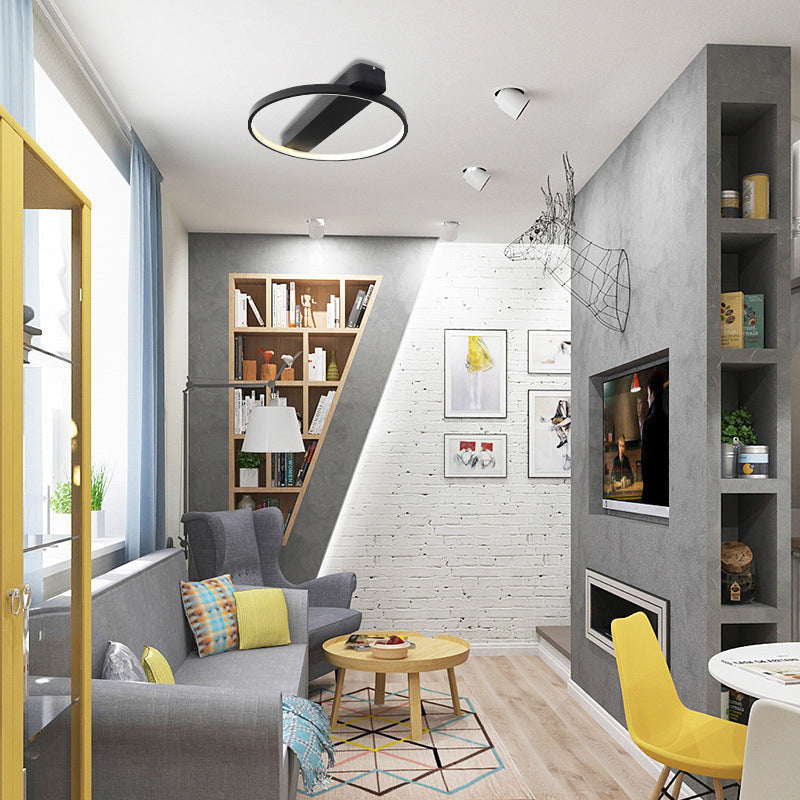 Modern Ring Acrylic Flush Light: 18"/25.5" Wide LED Ceiling Fixture for Living Room (Black/White)