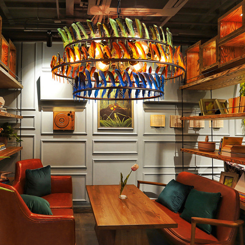 Yellow Traditional Metal Pendant Chandelier - Ring Living Room Light Fixture with 6 Hanging Lights