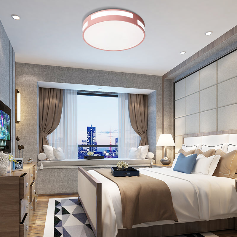 Modern Nordic Led Flush Ceiling Light With Round Acrylic Shade In Blue/Green/Pink/Yellow Pink