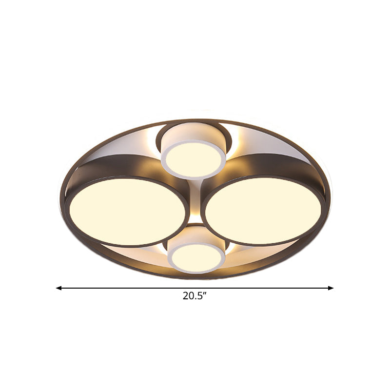 Modernist Metallic Black Round LED Flush Ceiling Light - Bedroom Flush Mount, 16.5"/20.5" Wide