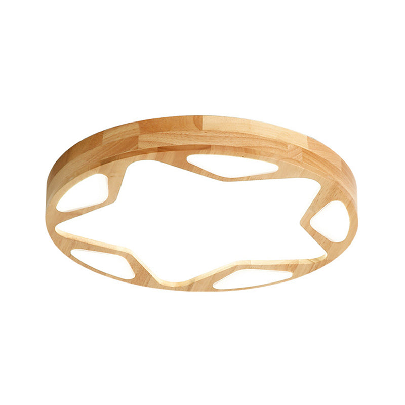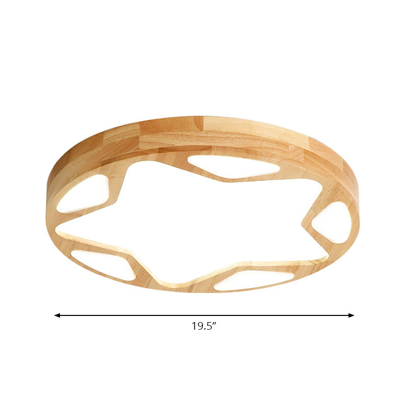 Wood Art Deco LED Flush Ceiling Light - Star Living Room Fixture in Beige