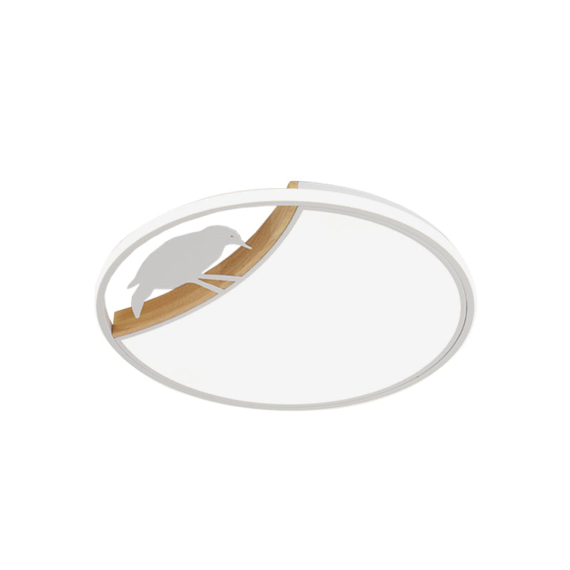 Nordic Round Led Flush Mount With Bird Deco - White/Grey/Green Acrylic Fixture White