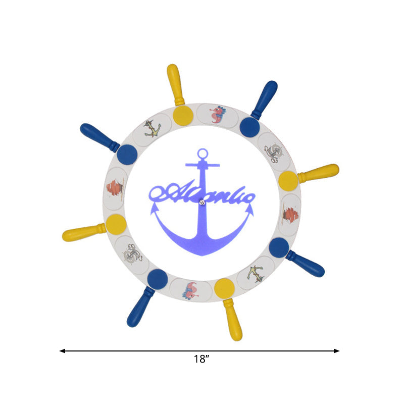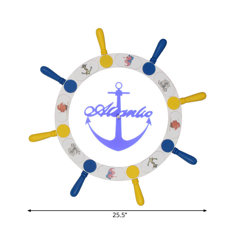 White Rudder Led Ceiling Light - Kids Wooden Flush Mount 18/25.5 Width