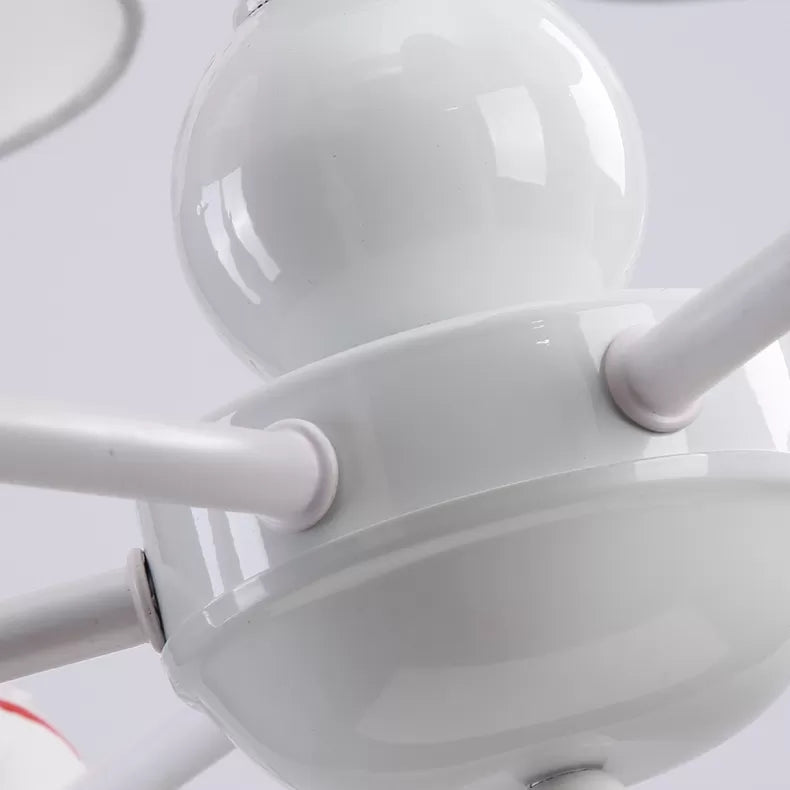 This beautiful chandelier is perfect for a kid's room, game room, or any other room that could use a touch of fun and playfulness. It features five metal hanging lights in a cartoon-inspired design. The shade is a white pink fabric that casts a warm and inviting glow. The light is controlled by a easy-to-use 12" chain.