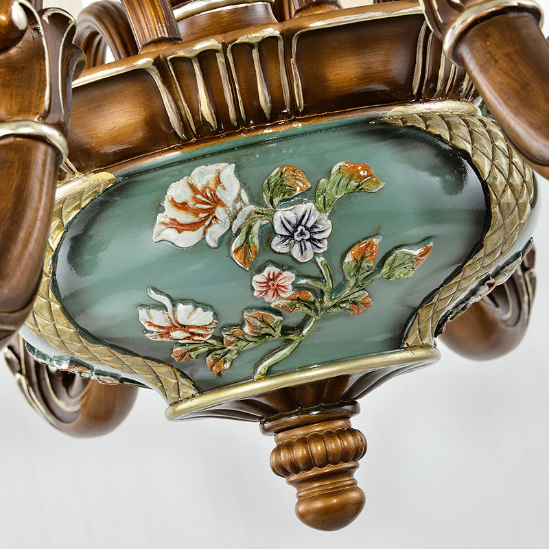 Retro Green Glass Chandelier Ceiling Light With Bell Hanging Design 6 / Blackish