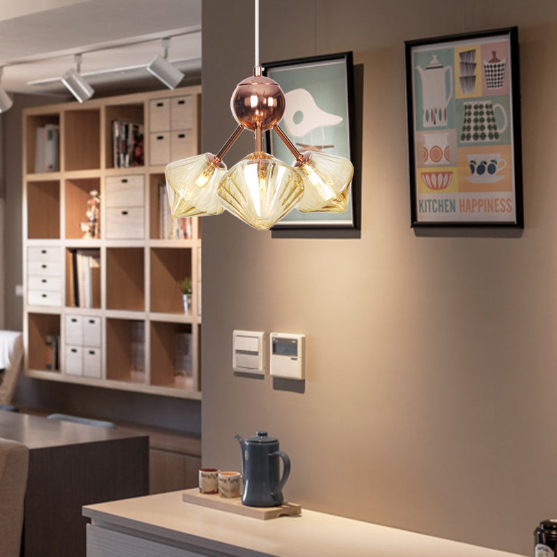 Diamond Farmhouse Chandelier Lamp - Amber/Clear Glass 3/9/12 Lights Hangs 13/27.5/34 Wide 3 / Amber