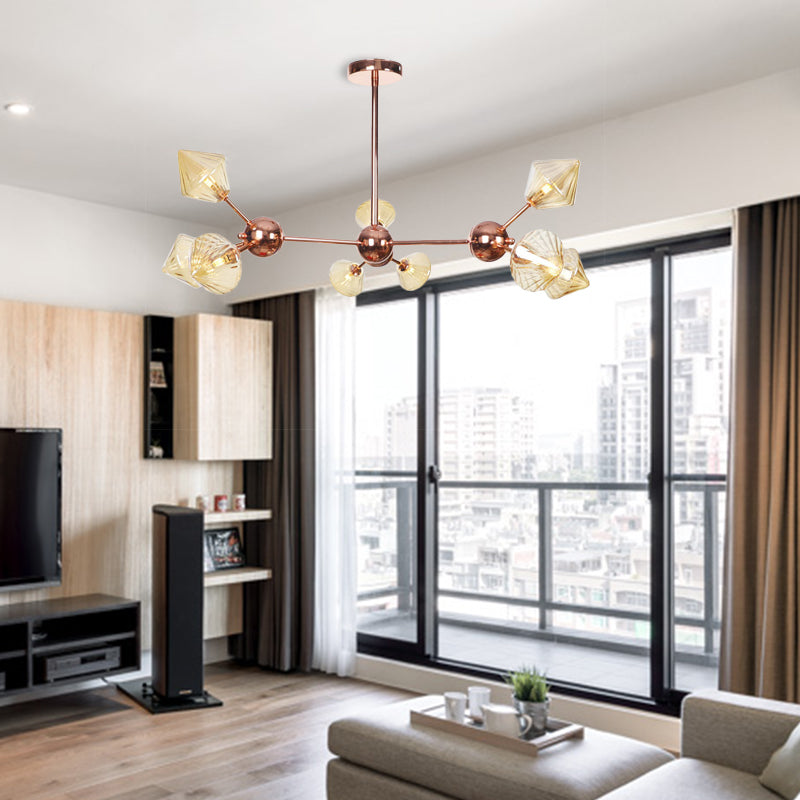 Diamond Farmhouse Chandelier Lamp - Amber/Clear Glass 3/9/12 Lights Hangs 13/27.5/34 Wide 12 / Amber