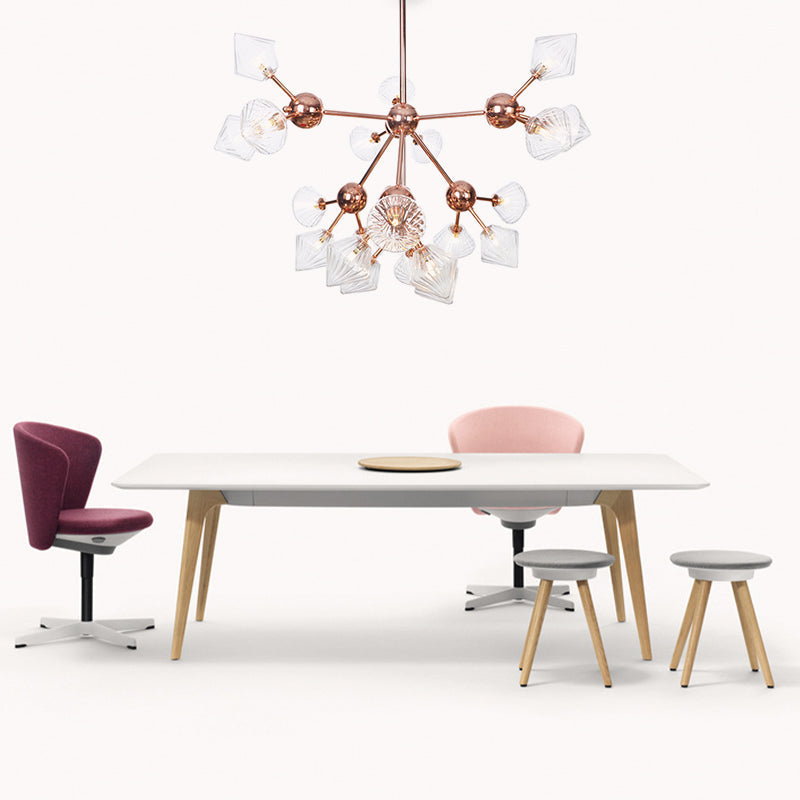 This chandelier is perfect for adding a touch of elegance to any room. It features a clear amber glass shade with a metal frame in a classic industrial style. The chandelier comes with a 5" canopy and includes all the necessary hardware for installation. It is also available in 220V-240V.