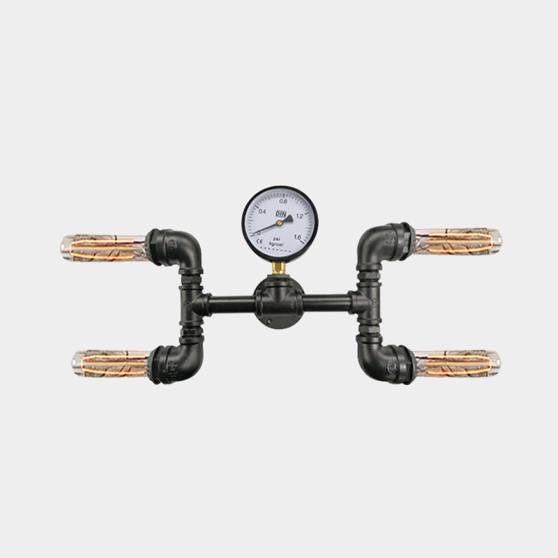 Farmhouse Black Iron Wall Mount Sconce with 4-Bulb H-Shape Design and Gauge Deco