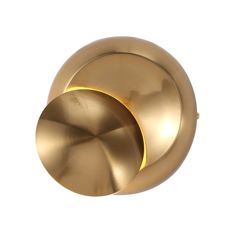 This is a wall lamp that is black and white with a rounded design. It is simple in style and has an LED light. The aluminum sconce lighting is ideal for a stairway. The dimensions are as follows: height is 5.5", width is 5.5", and depth is 3". The maximum bulb wattage is 39 watts and it is included. The product is made from metal and has a direct wired electric power source. The shade material is also metal.