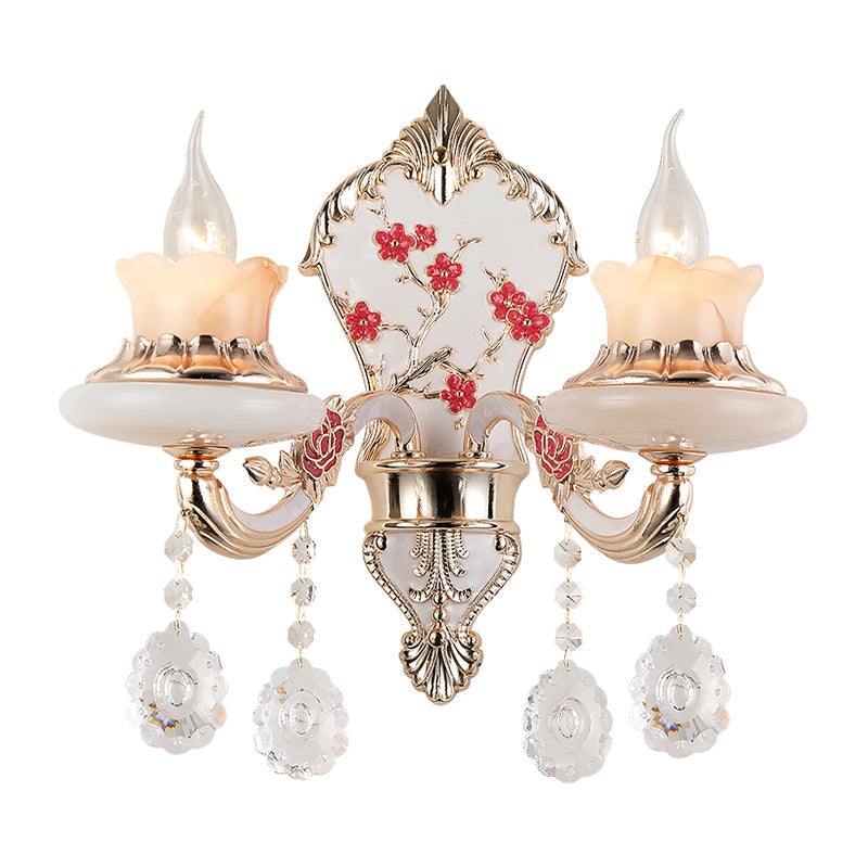 Opal Frosted Glass 2-Light Gold Wall Mounted Lamp - Curved Postmodern Design for Restaurants
