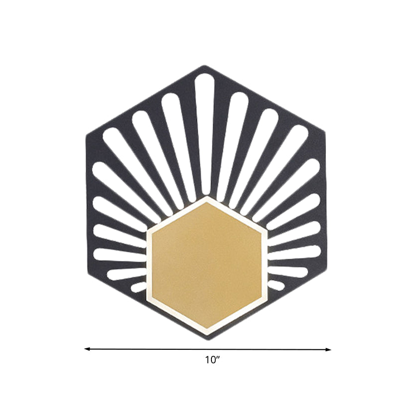 Hexagon Wall Mounted Light Modernist Metallic LED Bedside Sconce Lamp in Black with Fan Design, 8"/10" Wide - Wall Lights