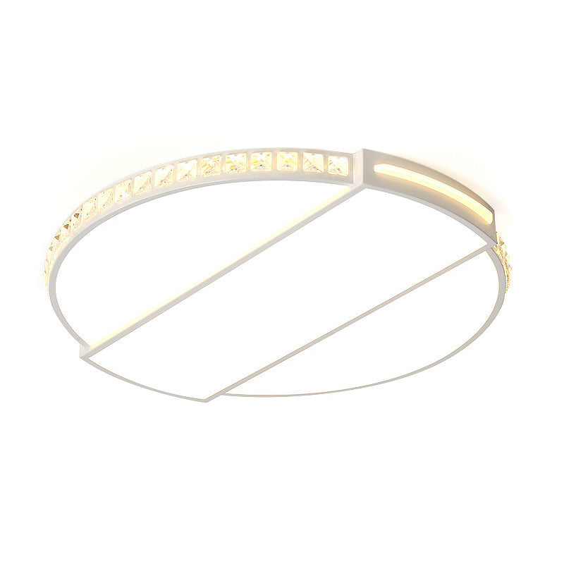 Modernist White Led Ceiling Lighting For Bedroom - Faceted Cut Crystal Disc Flush Mount