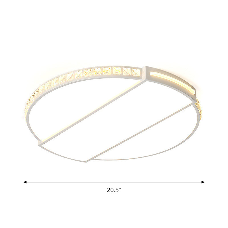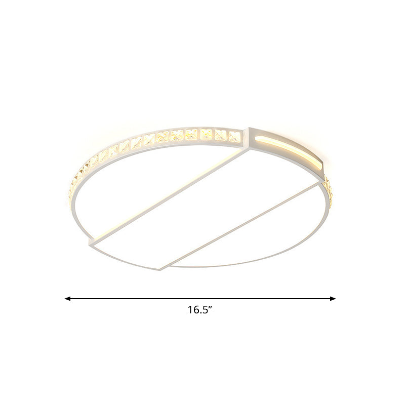 Modernist White LED Ceiling Lighting for Bedroom - Faceted Cut Crystal Disc Flush Mount (16"/20.5" Dia)