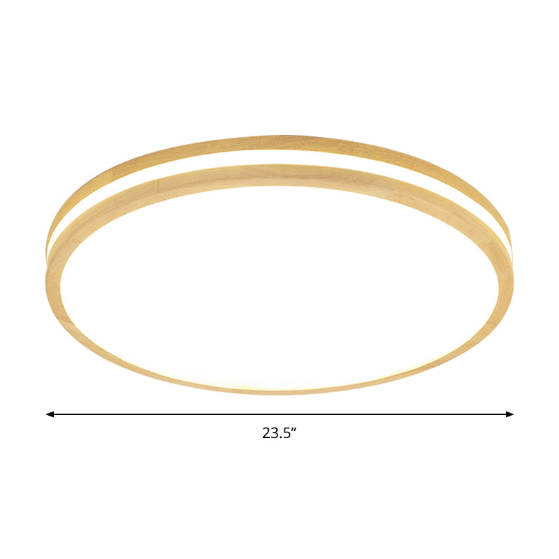 Japanese Style Flush Ceiling Light - Acrylic and Wood, LED Ceiling Lamp in Beige for Porch - 12"/16"/19.5"/23.5 inch Wide