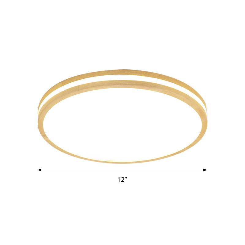 Japanese Style Flush Ceiling Light - Acrylic And Wood Led Lamp In Beige For Porch 12/16/19.5/23.5