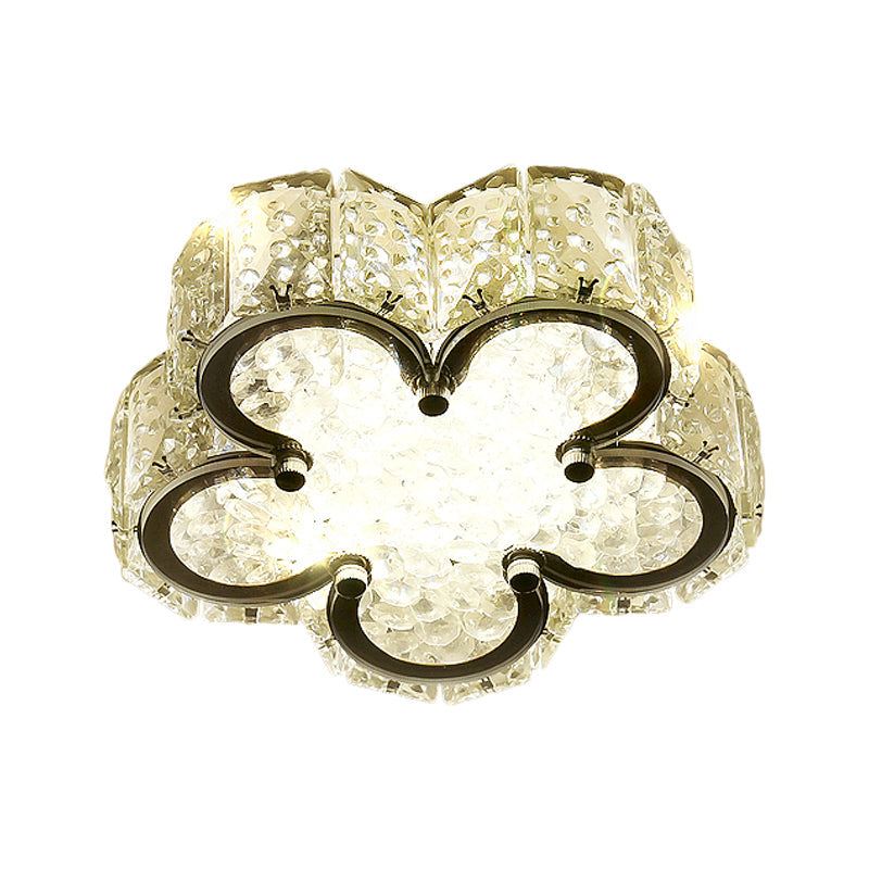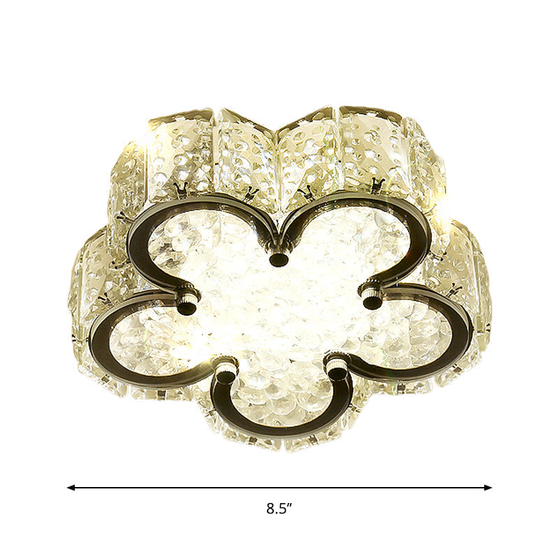 Modern LED Flush Lamp: Stainless-Steel Round/Square/Flower Ceiling Fixture with Clear Crystal Shade in Warm/White Light
