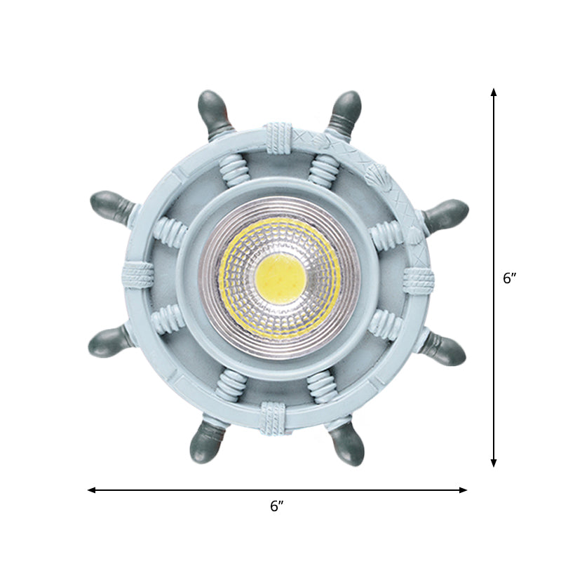 This eye-catching ceiling light is perfect for any nautical-themed room! The fixture is made of durable resin, and it features a black, blue, and light blue rudder design. The light type is LED, and the color temperature is either warm white or cool white. This product is also available in voltage 110V-120V or 220V-240V.