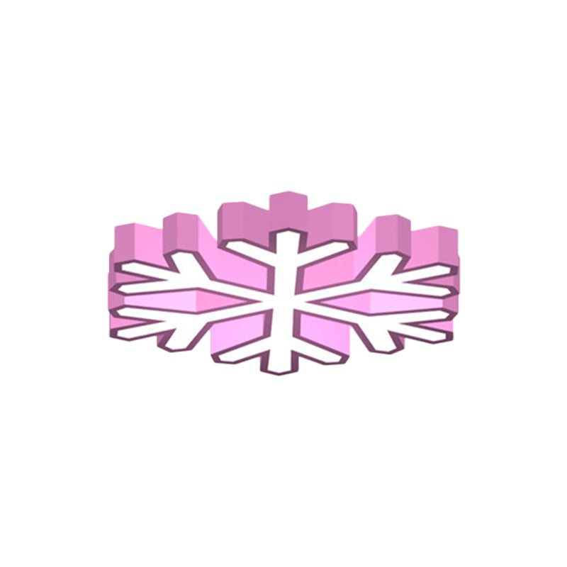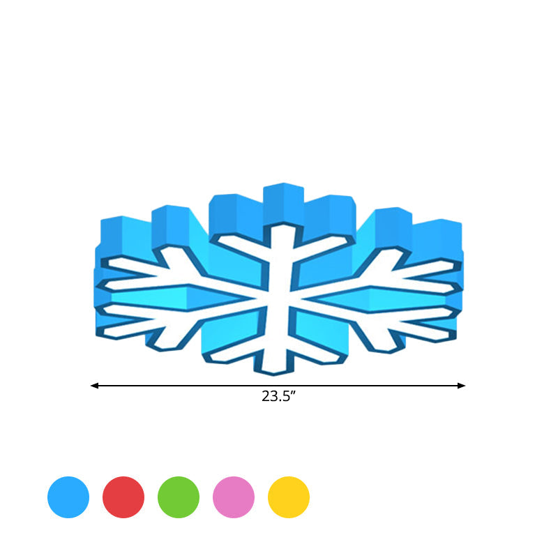 Colorful LED Flush Light Macaron Red/Yellow/Green Ceiling Mount Fixture for Nursery School with Snowflake Acrylic Shade