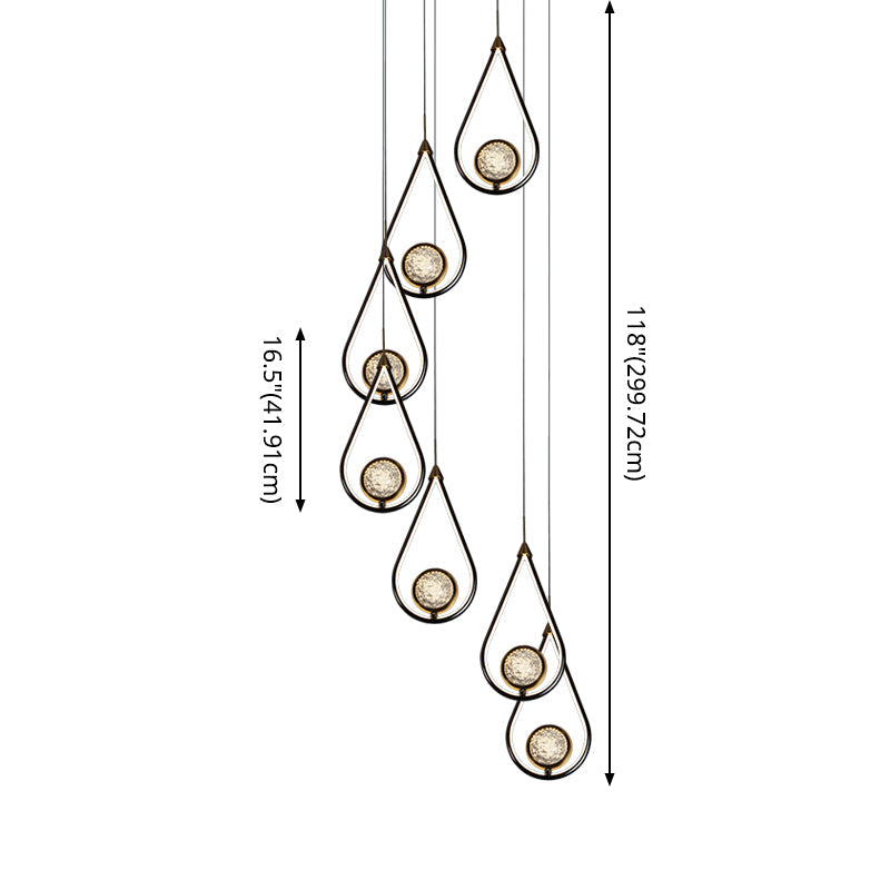 Led Crystal Pendant - Contemporary Style Metal Ceiling Hanging Lamp 7 / Black-Gold
