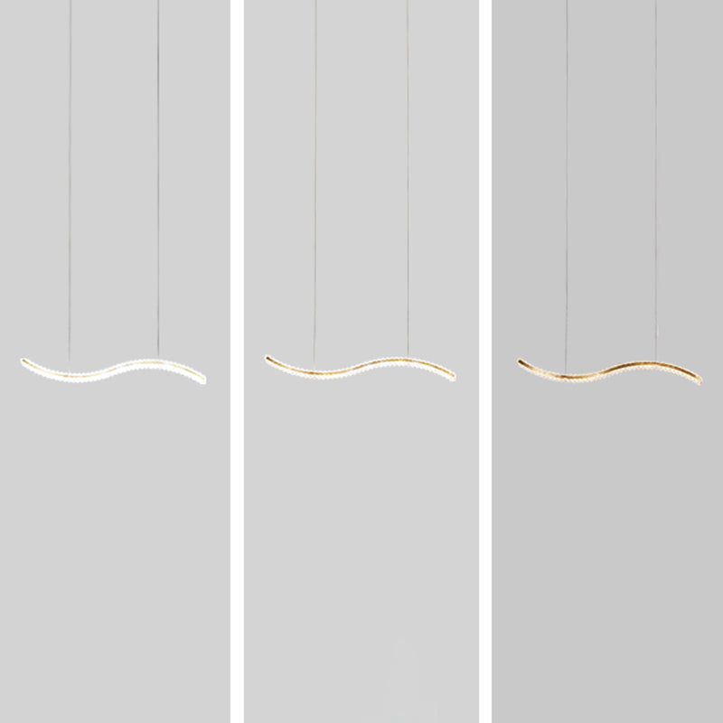 Wavy K9 Crystal Led Pendant Lighting For Dining Room - Simplicity Island Ceiling Light Gold
