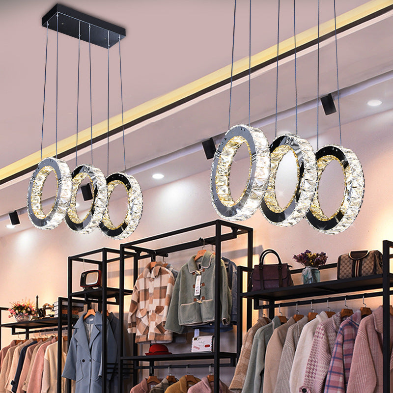Contemporary Black Crystal Led Pendant Light For Living Room With Down Lighting