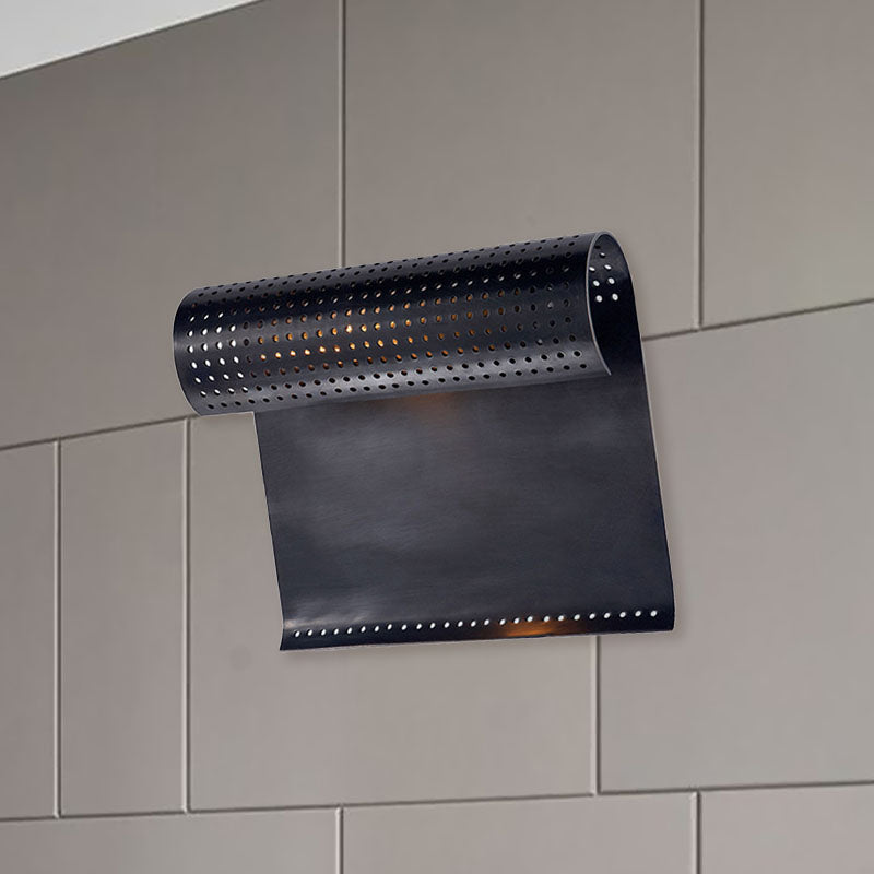 Metal Wall Sconce Light - Colonial Black/Gold Roll Living Room Wall Lamp with Cutout Design