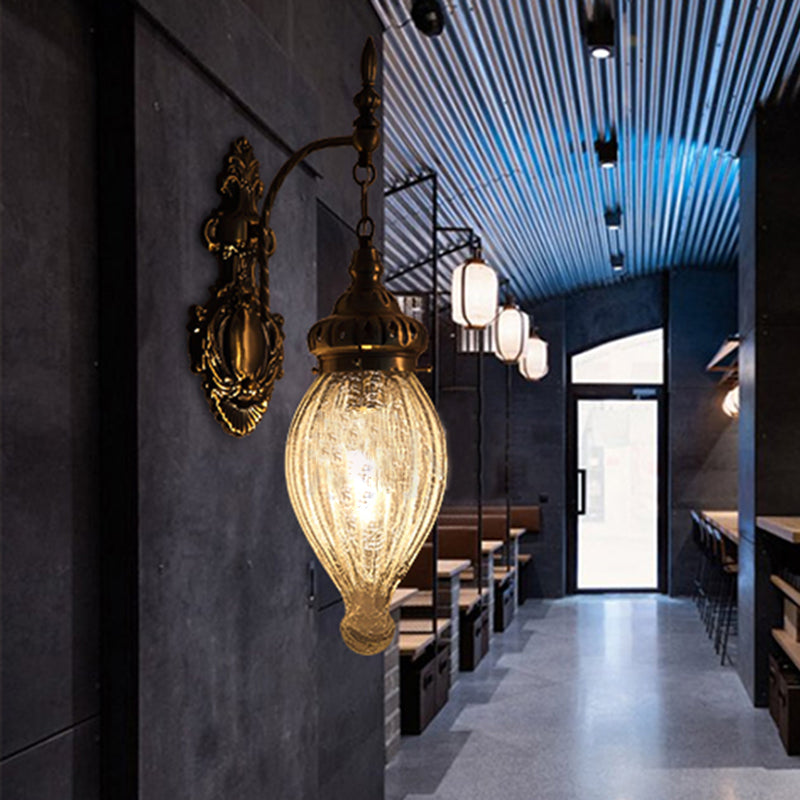 Vintage Crackle Glass Wall Lamp - 1 Light Dining Room Sconce in Bronze