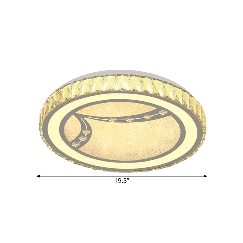Drum Ceiling Lamp with Crystal Bead Deco - Minimalist Acrylic LED Flush Mount Fixture, Chrome Finish - Warm/White Light for Bedroom