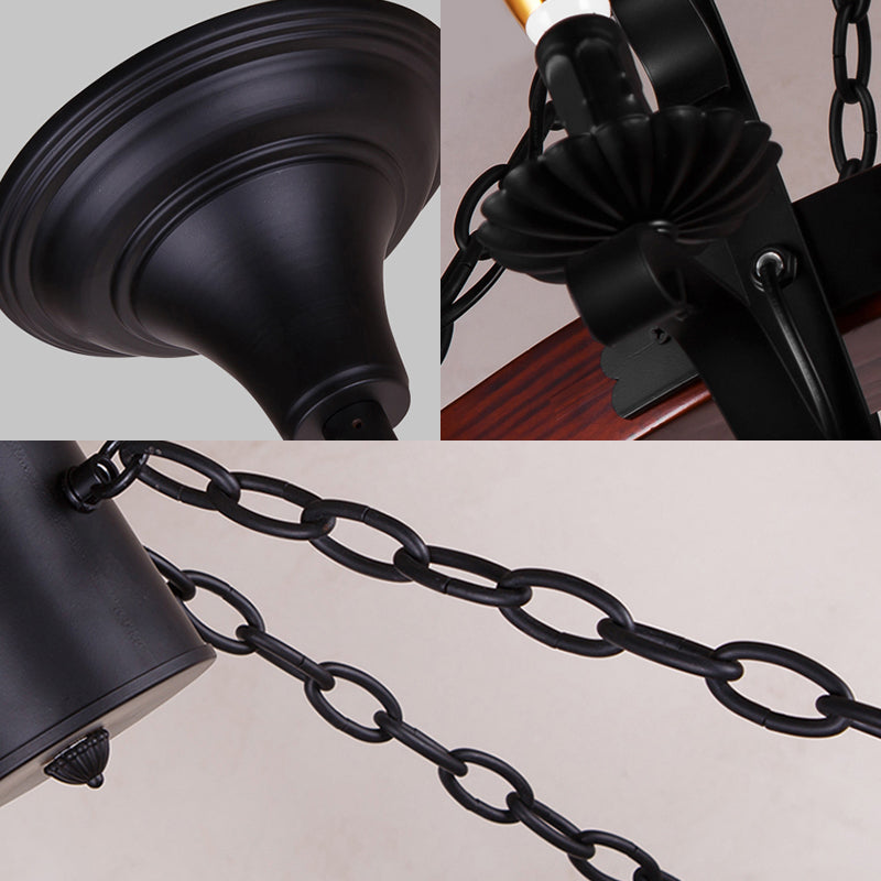Rustic Wood Candle Chandelier - Red Brown 3/5/6 Lights Dining Room Hanging Light