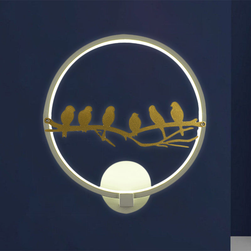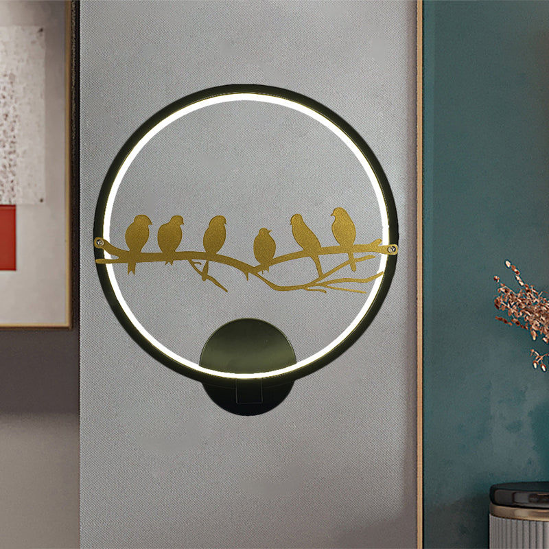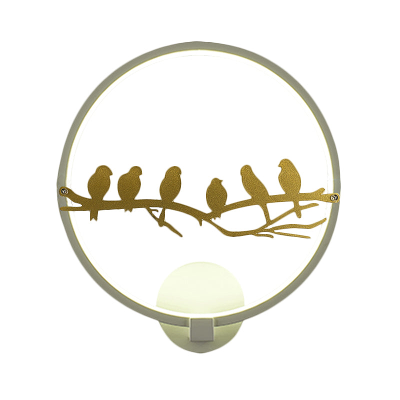 Rounded Led Acrylic Wall Lamp For Living Room - White/Black Oriental Style
