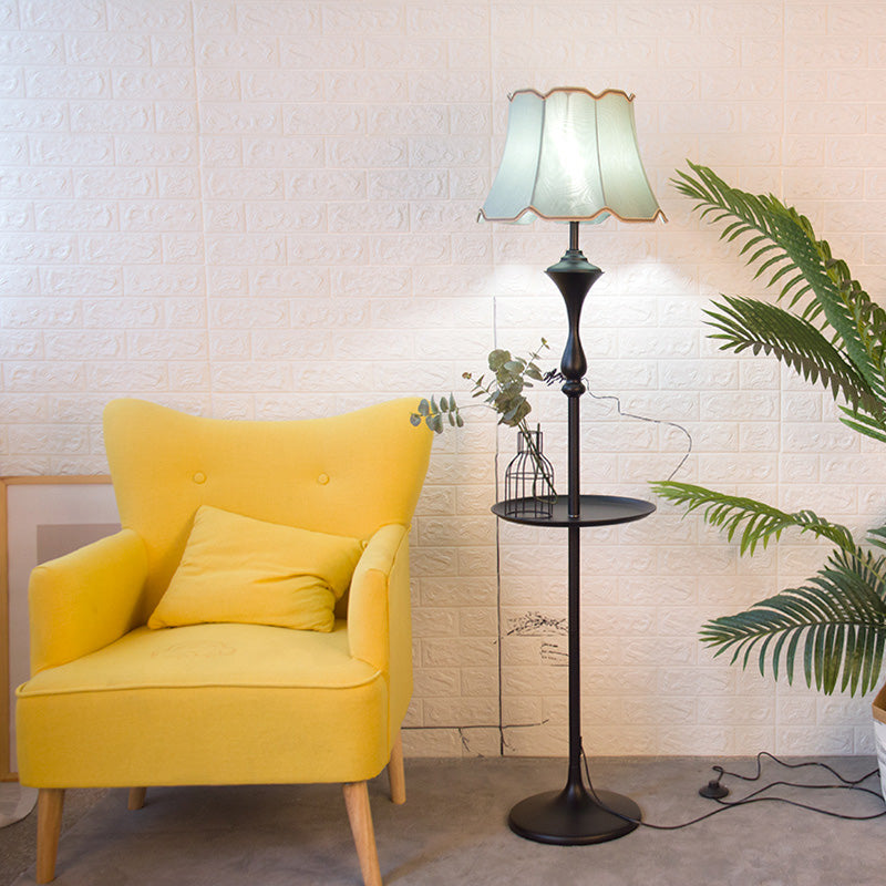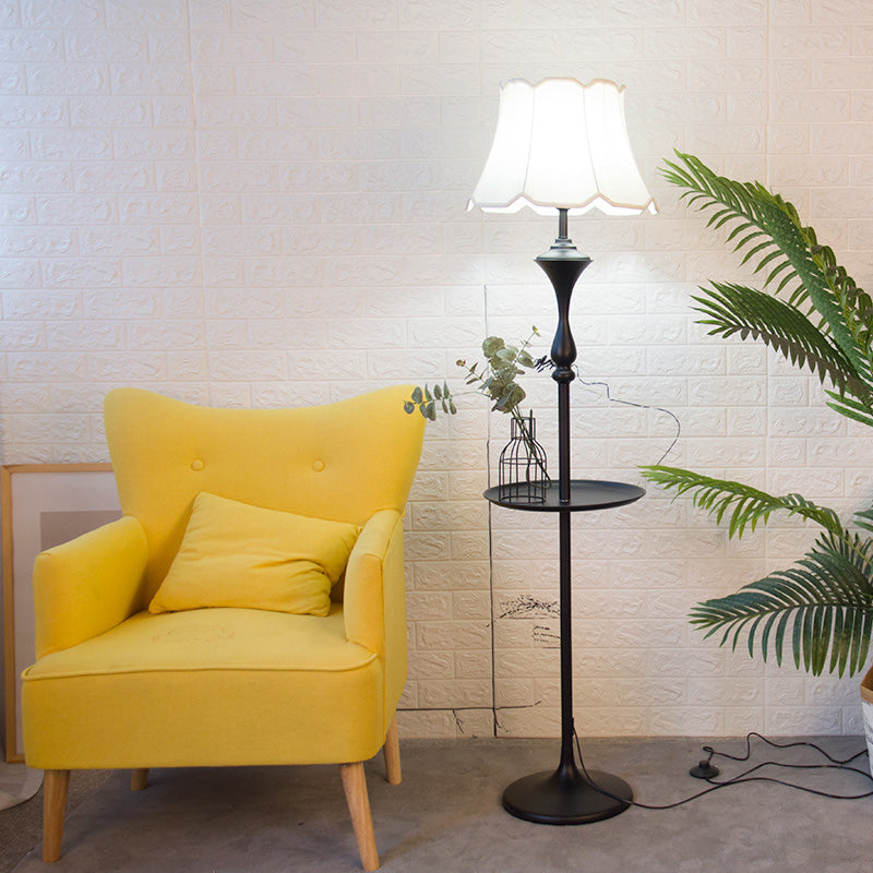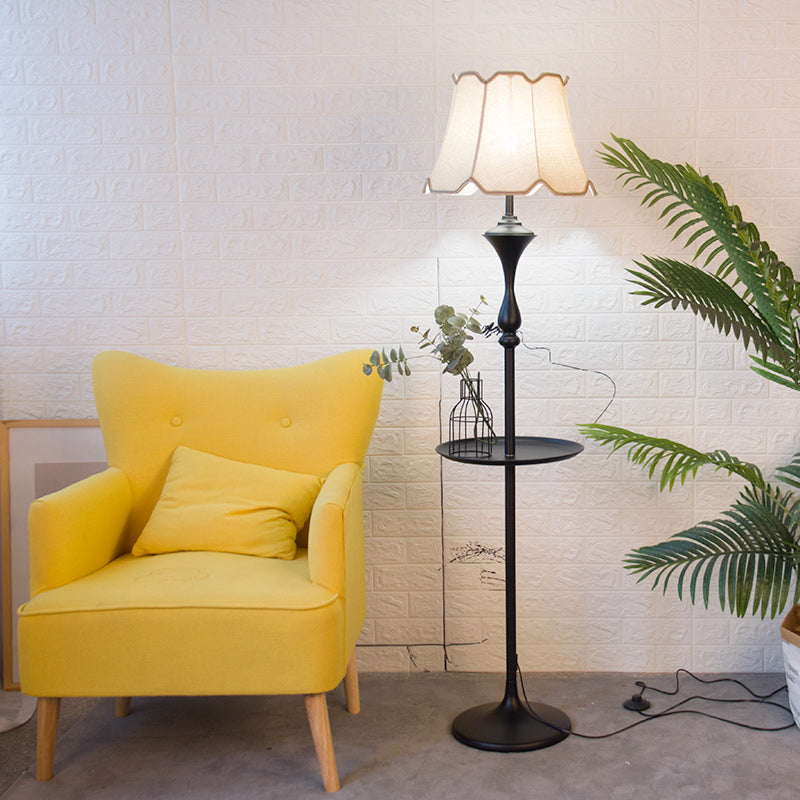 Traditional Bell Shaped Fabric Floor Lamp with Scalloped Trim for Living Room - Single-Bulb Standing Light