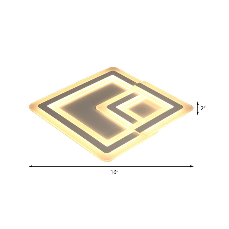 Nordic Square Led Flush Mount Lamp - Multiple Sizes Metal & Acrylic White Ceiling Light In