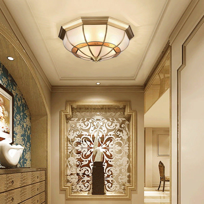 Metal Brass Flush Light Bowl Fixture: Antique Ceiling Mount For Living Room - 4/6 Bulbs