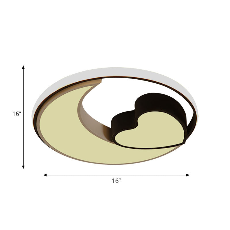 LED Flush Mount Ceiling Lights: Acrylic Moon and Heart Design in Black and White for Living Room