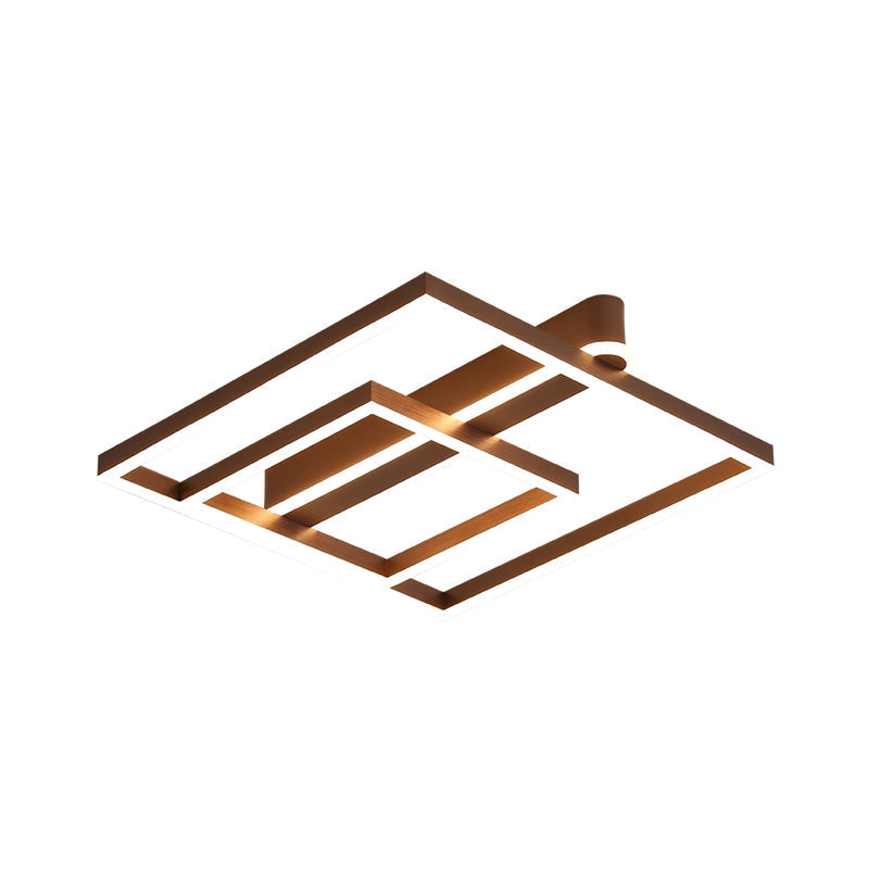 Square Acrylic Led Flushmount Light In Gold/Coffee Finish For Bedroom Ceiling Coffee / B