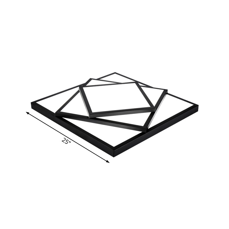 Modern Metal LED Flush Mount Ceiling Light Fixture for Living Room - Black/White, Rectangle/Square, 16"/19.5"/25" Wide