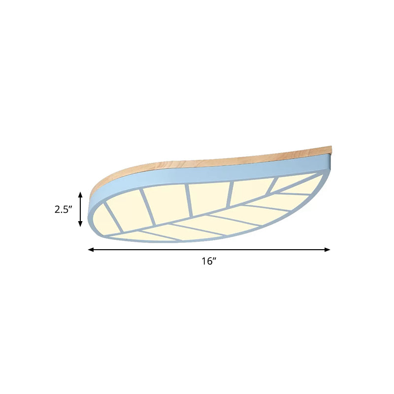 Blue Leaf Led Ceiling Lamp For Child’s Bedroom - Cartoon Acrylic Flush Mount Light / 16’ Warm
