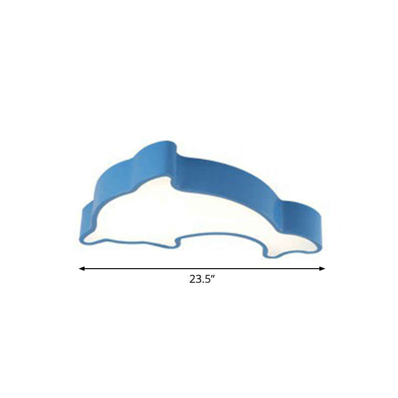 Yellow Cartoon Dolphin Flush Mount LED Ceiling Light for Baby Room - Acrylic Fixture