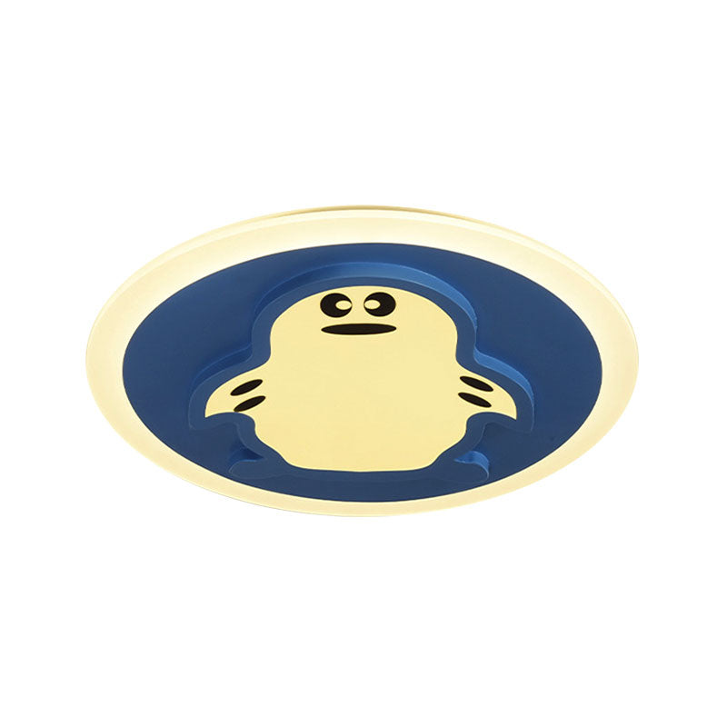 Blue Cartoon Penguin Ceiling Lamp for Kindergarten Corridor - Acrylic Ceiling Mount Light