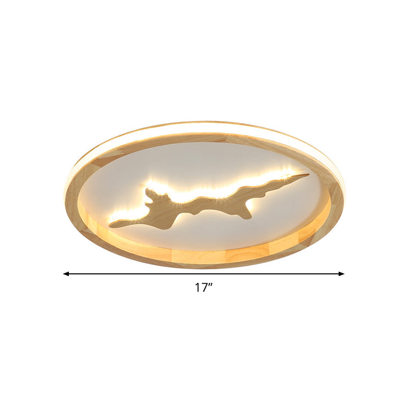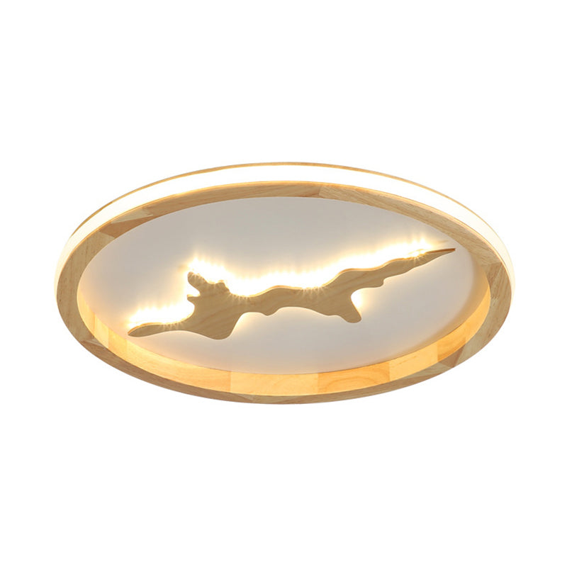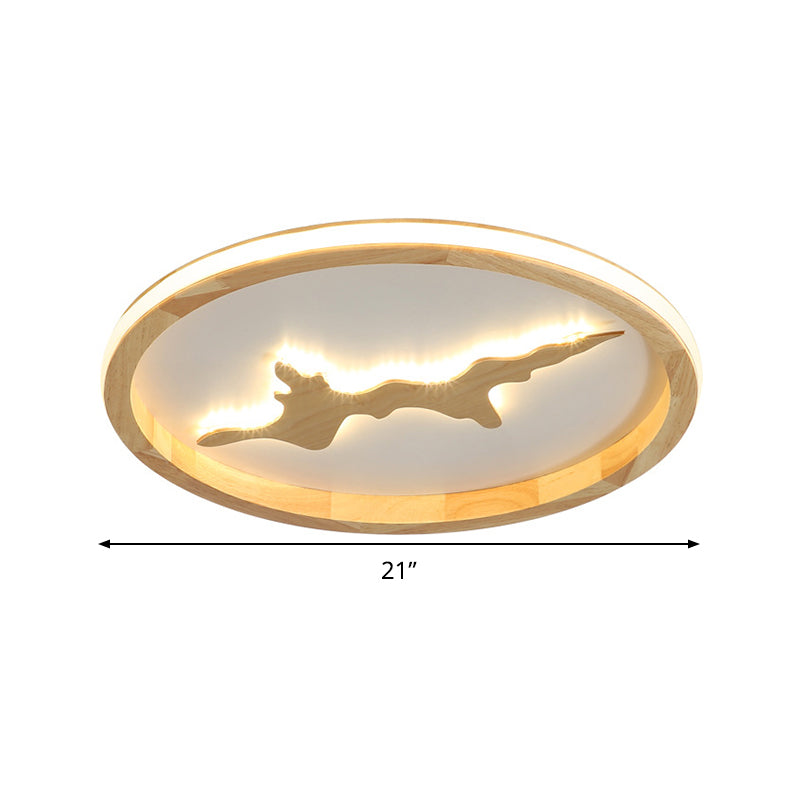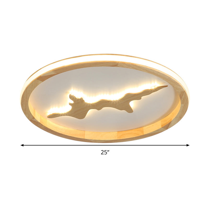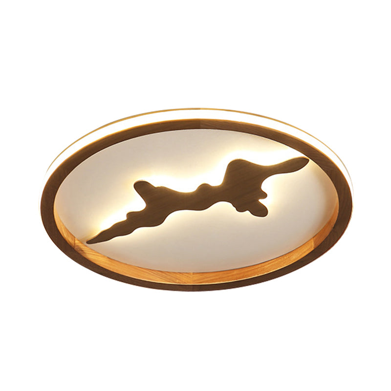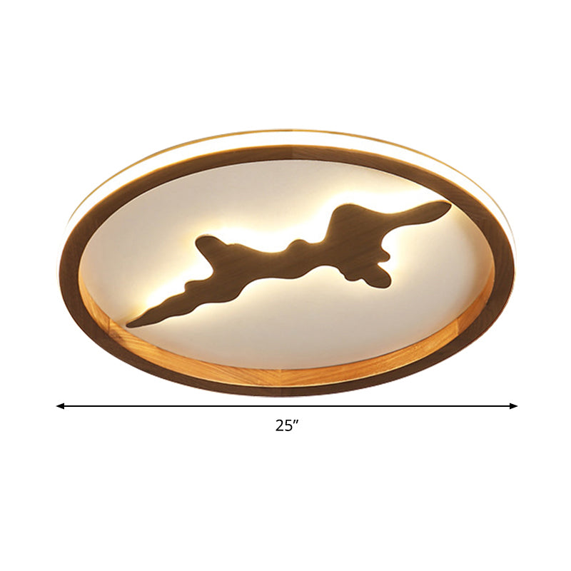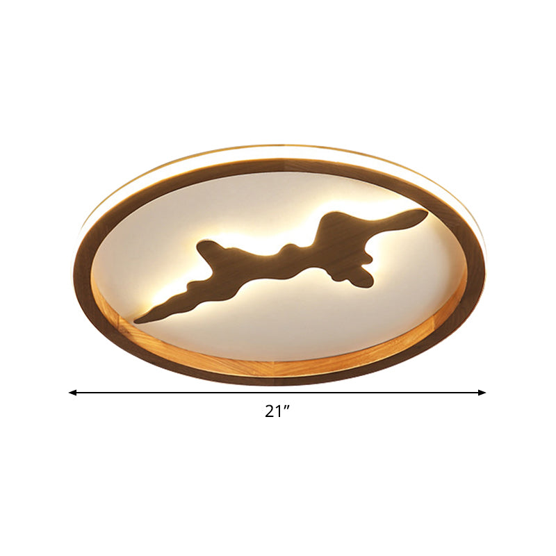 This product is a Circle Ceiling Mounted Light that is Minimalist and made of Wood. It is available in two colors, Dark Brown and Light Brown. LED Flush Light Fixture is 17"/21"/25" wide.