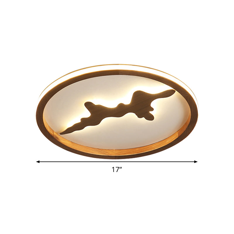 Minimalist Wood Circle Ceiling Light Dark Brown/Light Brown Led Flush Fixture - 17’/21’/25’