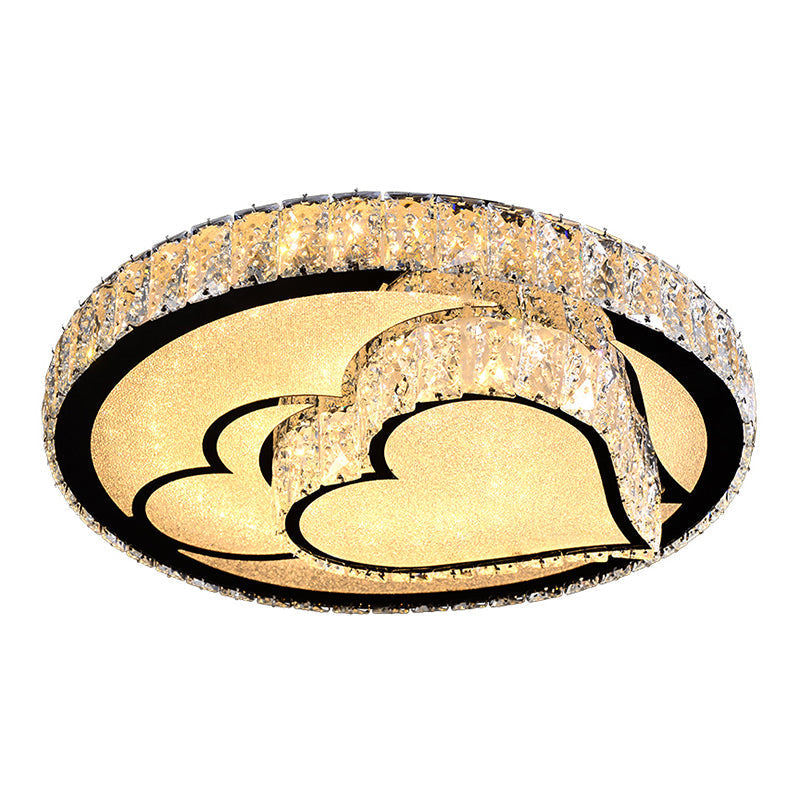 Modern Crystal LED Ceiling Light Fixture for Dining Room - Circular Flush Design with Stainless Steel Frame